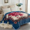 Heavy Korean Mink Fleece Blanket – 2 Ply Reversible 520GSM Silky Soft Plush Warm Blanket for Autumn Winter, Flower/Light Blue